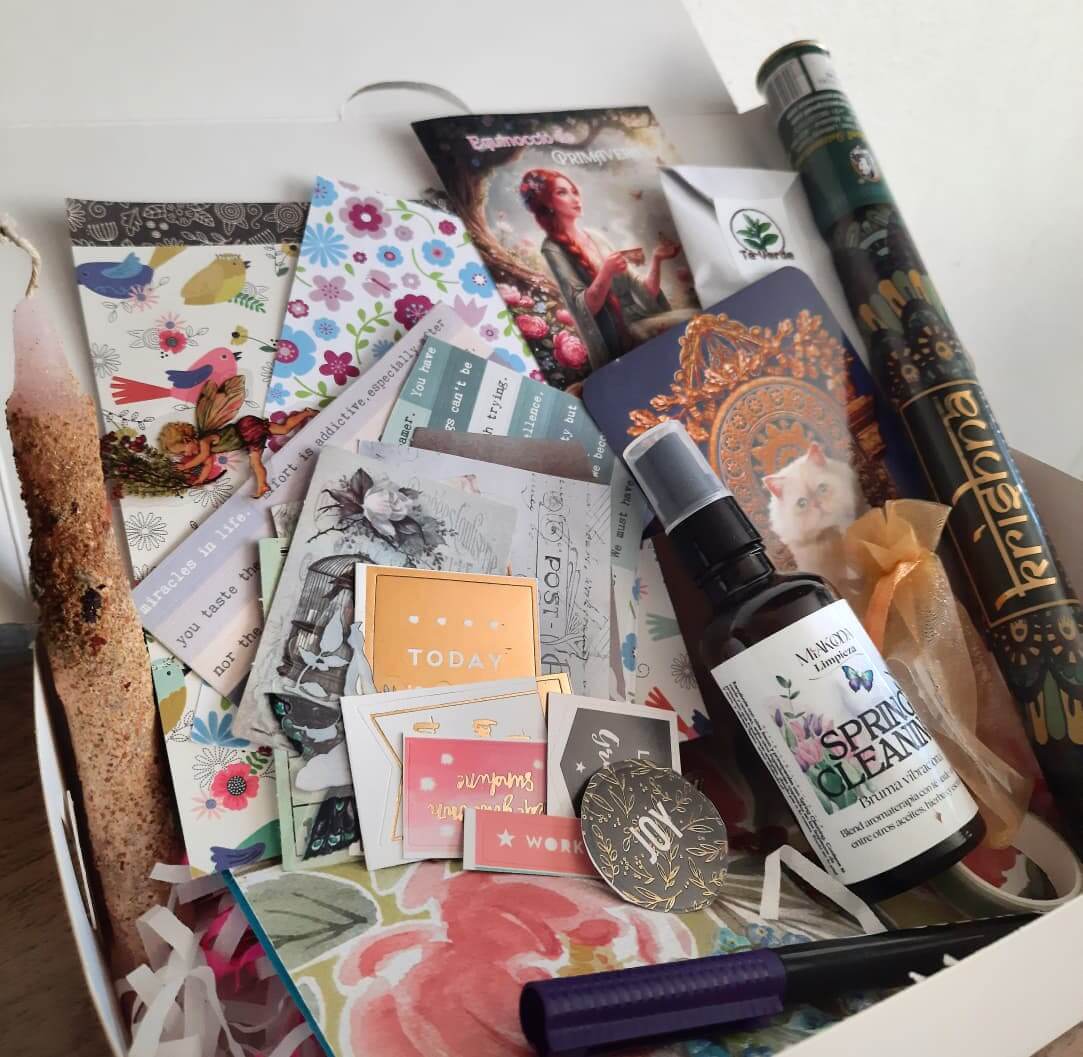 Cada caja estacional de Miakoda es un ritual en sí misma: contiene productos exclusivos y cuidadosamente seleccionados para acompañarte durante los portales energéticos del año, como solsticios y equinoccios.